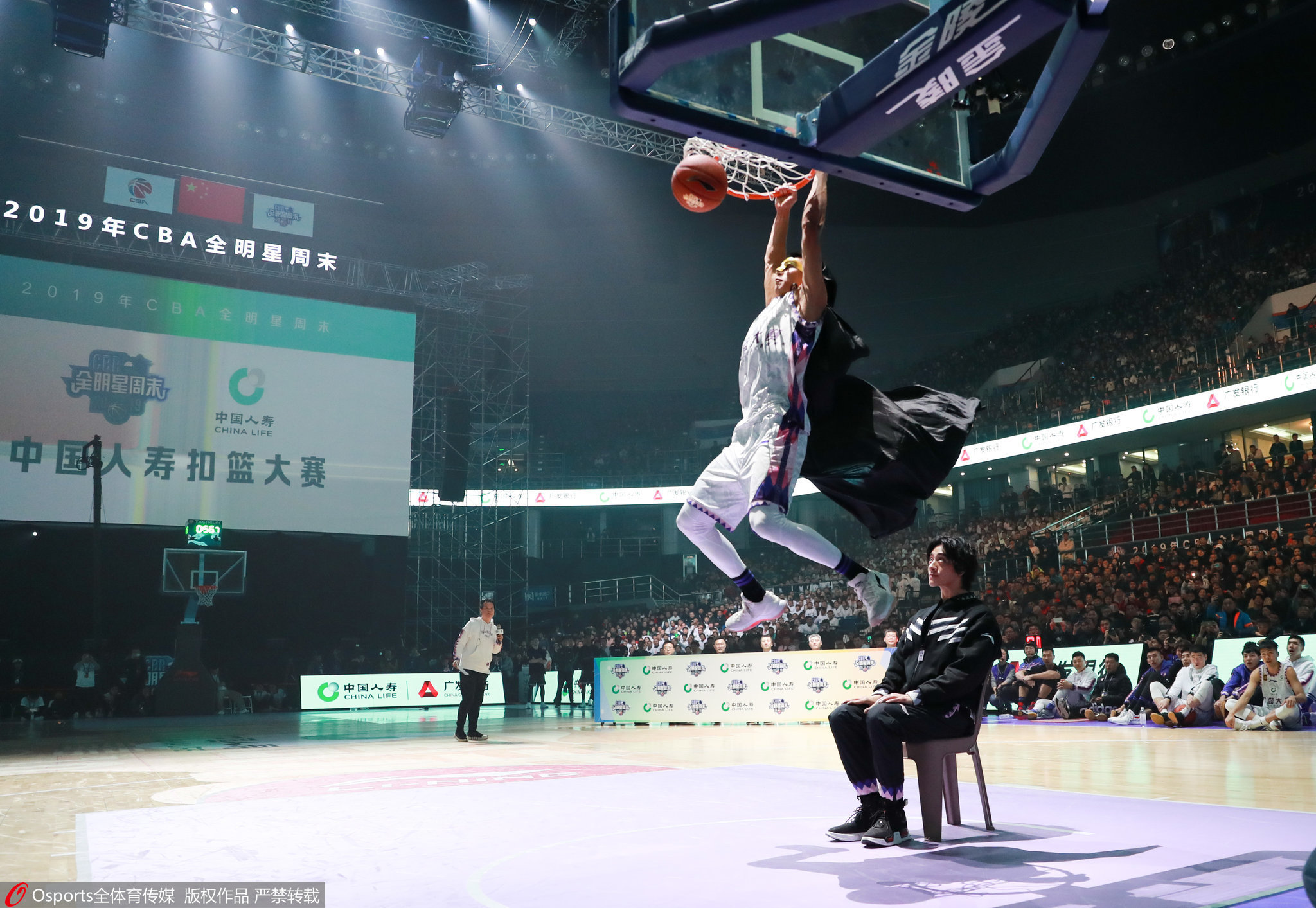 第二扣的创意,张健豪透露是想表达“神秘感”和“王者气质”,他身披斗篷飞越坐在椅子上的搭档,最终成功打动评委。但这位大学生扣篮王对自己的表现并不满意。“可能自己心里压力大,让很多观众失望了。”他也期待有机会能与受伤退赛的王潼一决高下。