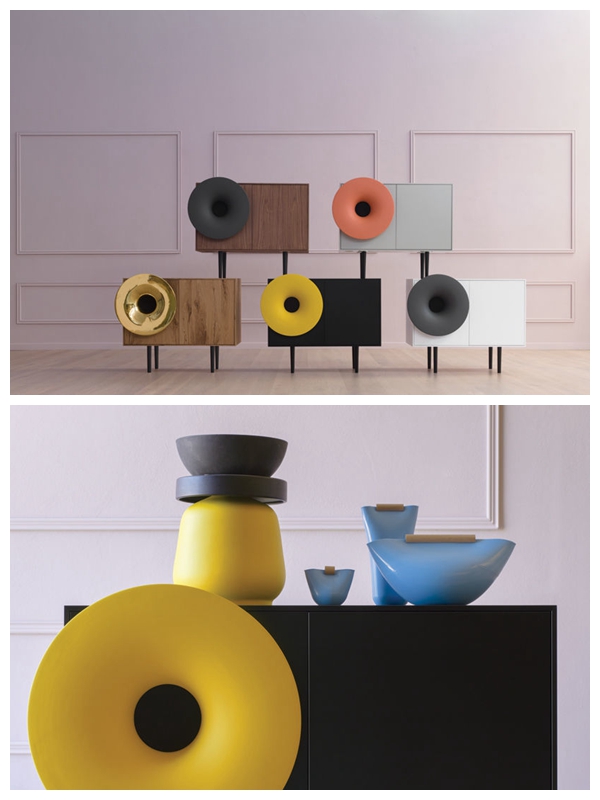 这是一款双开门的橱柜,上面几乎占据了一个柜门的喇叭形状扬声器设计似乎在告诉我们,这不仅仅是一个橱柜。里面搭载的蓝牙音响,简约的设计无论是放在客厅还是卧室都时尚又实用,多种配色可以满足多种家居风格,拿出手机打开蓝牙,循着缓缓流出的音乐,这款橱柜音响一定令人眼前一亮。