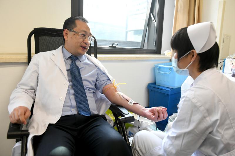 北京天坛医院党委委员、神经外科党总支书记贾旺早早来到献血室。“我来献血,是尽一名医生的责任,同时也希望通过我的行动感召更多的人参与献血,帮助更多的患者,让更多的家庭团圆。”贾旺说。