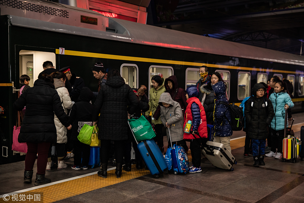 1月21日,2019春运大幕开启,北京站发出首趟增开旅客列车。图片来源:视觉中国