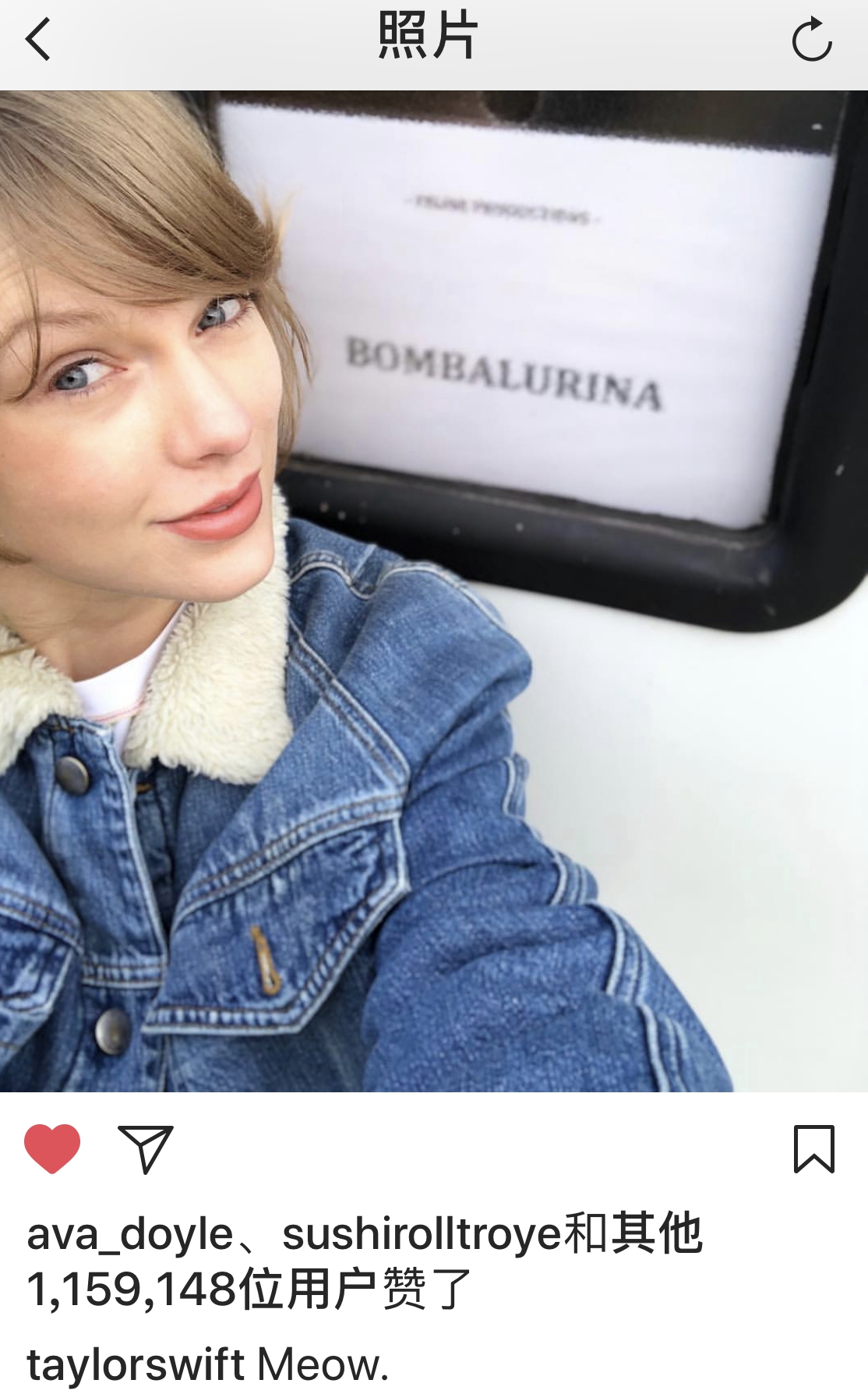 新京报讯(记者 杨畅)1月23日,“霉霉”泰勒·斯威夫特在社交媒体上发布了一张自拍照,背景是电影版《猫》片场写有邦贝鲁琳娜名字的标牌。正式确认其将参演由韦伯热门音乐剧《猫》改编而成的电影版,并曝光了她饰演的角色:美丽的红色母猫邦贝鲁琳娜(Bombalurina)。邦贝鲁琳娜是剧中主要的女性角色之一,母猫的首领,在唱段《神秘的猫麦卡维提》中有一段著名的独唱。