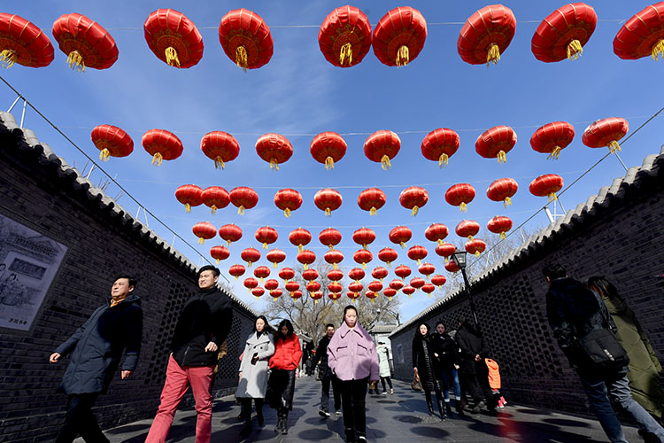 新京报讯 1月26日,随着新春佳节的临近,东城区南锣鼓巷内,300个灯笼排成五个矩阵,让胡同里喜气洋洋。古老的胡同里,装点着红灯笼、京剧脸谱、民俗画、中国结,这片历史与时尚交融的街区换上了新装,处处呈现出文化和节日的氛围,观光客们陶醉其中。
