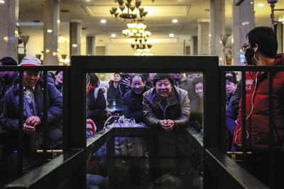 昨日,北京站检票口,想到马上能回家过年,乘客们开心地笑。 摄影/新京报记者 彭子洋