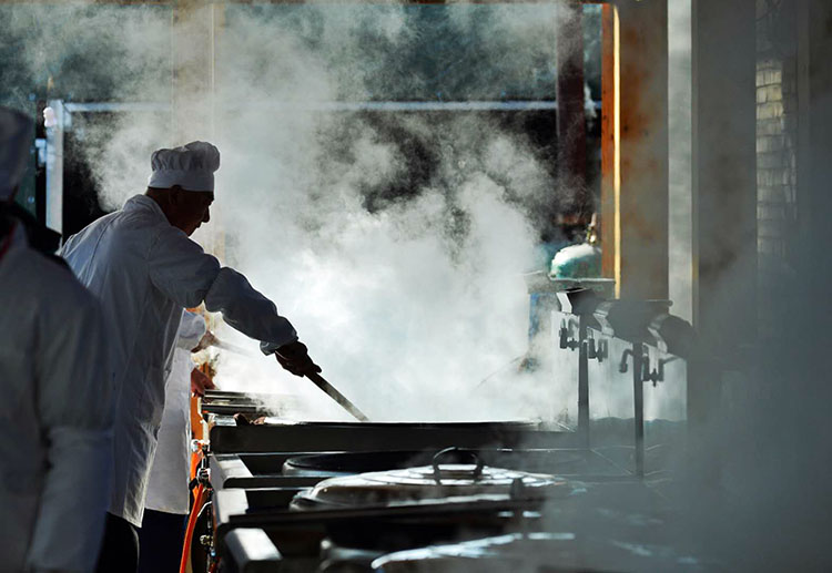 十一口大锅一字排开。