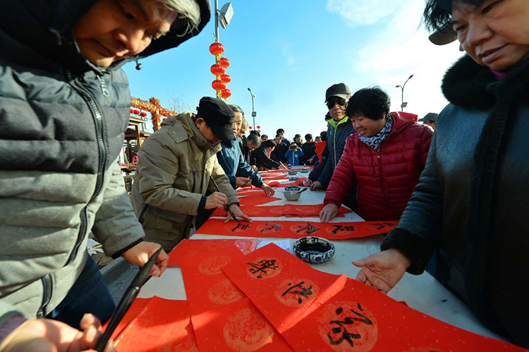 书画家们挥毫泼墨,忙着为村民们写春联、送春联。