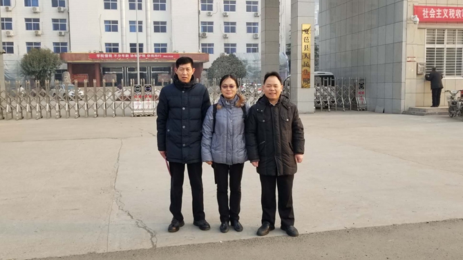 ▲1月29日下午,宣判无罪后,张玉玺(左)和辩护律师郑晓静、徐昕在夏邑县法院门口合影。图/新京报网