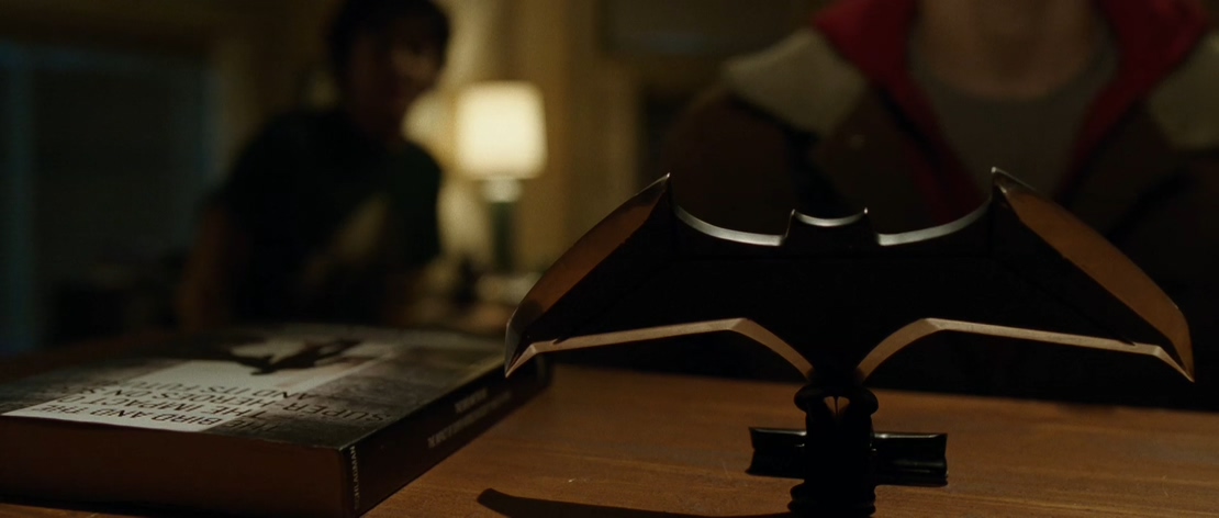 片中将会出现DC各种超级英雄的标志,比如某处书桌上的“蝙蝠侠”LOGO摆件。