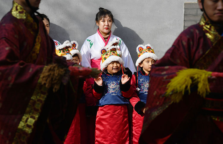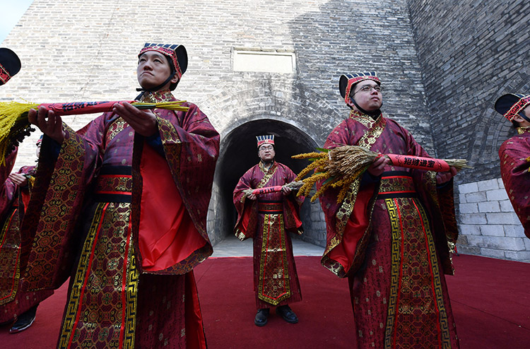 仪式上,8名礼仪官手持五谷,缓步从观象台城门进入,寓意着来年万事顺遂,五谷丰登。