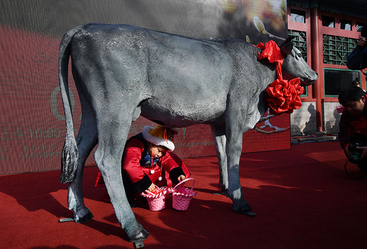 大方家回民幼儿园的小朋友扮演的“牧童”,以“春牛”为中心,演绎古人鞭打春牛的场景。