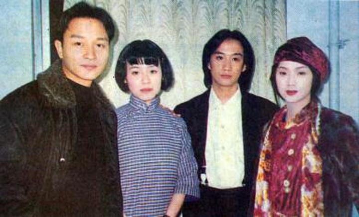 拍摄《夜半歌声》时,张国荣与刘琳、黄磊、吴倩莲合影。