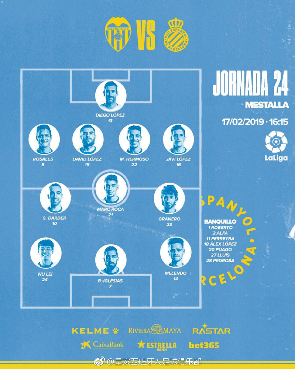 北京时间今晚11点15分,西班牙人将在西甲第24轮客场挑战瓦伦西亚。赛前俱乐部公布,中国球员武磊为西班牙人首发,西甲历史上第一位首发的中国球员出现了。