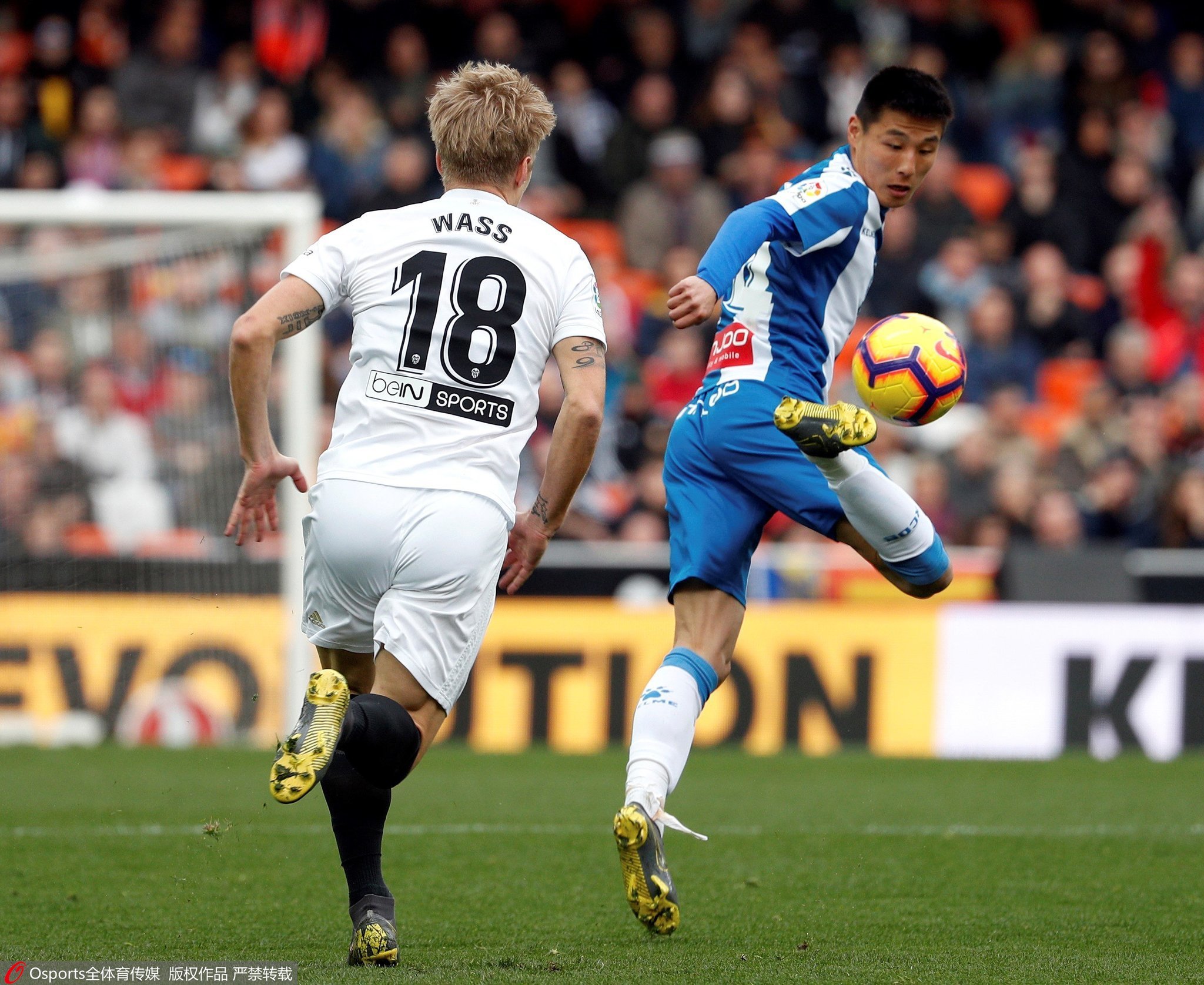 在北京时间今天凌晨结束的西甲第24轮联赛里,西班牙人客场0比0逼平瓦伦西亚。尽管首发出场的武磊只得到了全场最低的6.1分,但他依然创造了历史:他是西甲历史上第一位首发的中国球员,也是中国球员时隔2857天再次在欧洲五大联赛里首发登场。