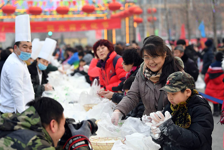 卢沟桥乡靛厂村为村民准备了3750斤元宵,村民还可以现场制作元宵。