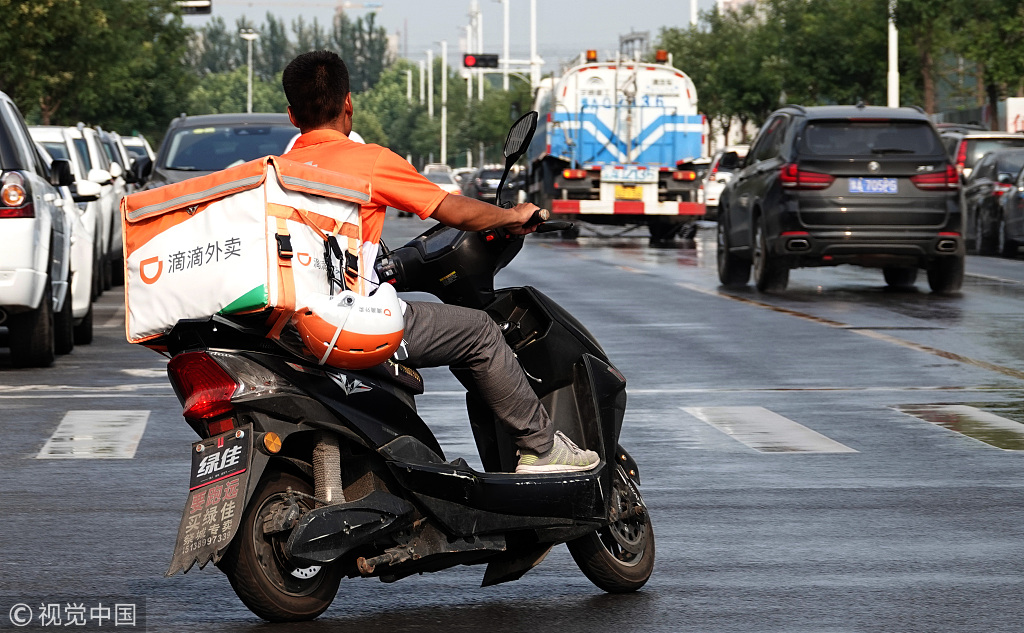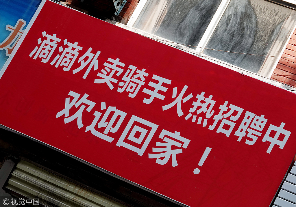 2018年09月24日,郑州街头的“滴滴外卖骑手火热招聘中 欢迎回家”的大幅广告牌。