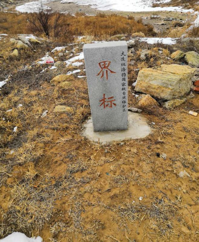 长兴岛上的大连斑海豹国家级自然保护区界碑。受访者供图