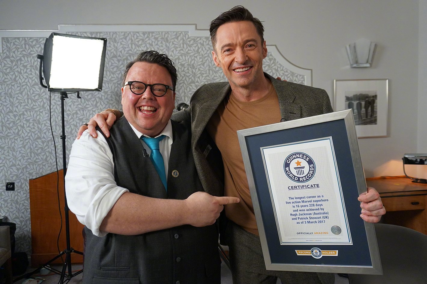 休·杰克曼和帕特里克·斯图尔特获得吉尼斯认证。