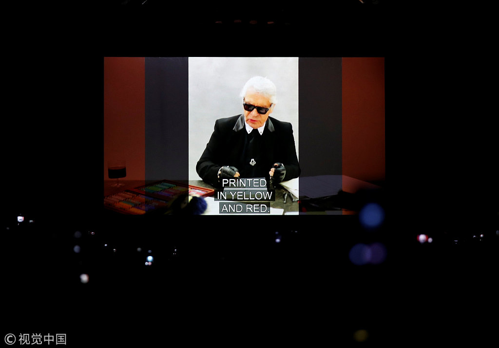 整场大秀最特别的一个环节是在最后。现场播放了一段1分钟的短片,来缅怀几天前离世的FENDI创意总监Karl Lagerfeld。短片中,有人问Karl能否画一画第一天来到FENDI上班时的自己?他说:“哦,那可是史前的事情了,不过我还真记得。”