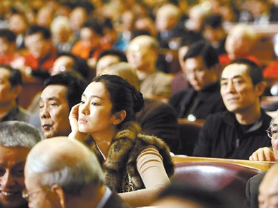 2007年3月,巩俐、张艺谋坐前后排开会。
