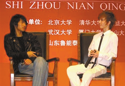 2008年,韩寒、郭敬明在新概念作文大赛十周年活动上进行“历史性会晤”。