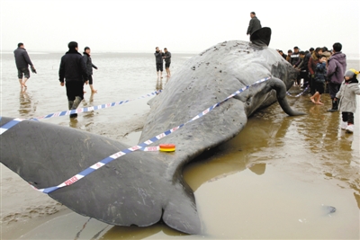 昨日,江苏省盐城市滨海县,分布在海滩沿线5公里距离内的4头成年鲸鱼,躺在已经退潮的黄海海边,被证实已全部死亡。鲸鱼的大半个身子被海水覆盖,据渔民目测,每条鲸鱼都有10多米长,重量在10吨左右,至于黄海海域怎么出现如此鲸鱼群,又为何搁浅,目前尚不清楚。李根 摄