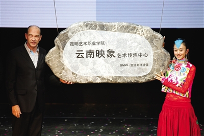 本报讯 (记者梁静晶)上周四晚,宝马公司和著名舞蹈艺术家杨丽萍在云南昆明艺术剧院宣布携手成立“云南映象艺术传承中心”,目的是帮扶云南边远山区贫困青少年的艺术教育,使得云南少数民族的民间艺术得到延续。该中心主要依托昆明艺术职业学院“彩云班”的学生作为初期生源,目前共有188名学生,全部来自云南边远地区贫困家庭的青少年,其中46人是非常具有艺术潜质的国家非物质文化遗产活态传承计划实验组成员。