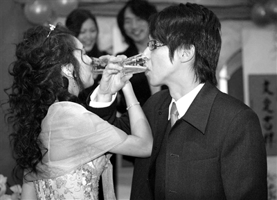 与妻子共饮交杯酒的冠佑。