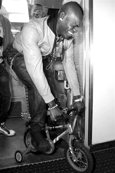 21岁的巴洛特利显然已过了骑童车的年龄,但他的心理还停留在这个阶段。