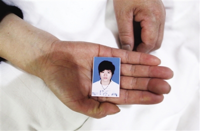 昨日,昌平马池口镇一家宾馆内,楚楚(化名)的母亲手捧女儿照片。新京报记者 薛珺 摄