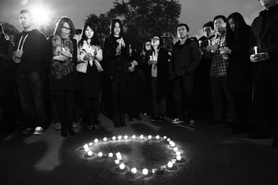 4月11日傍晚,南加州大学400余名中国留学生自发聚集在校园内的特洛伊广场,点燃蜡烛,追思当日凌晨在校园附近被枪杀的两名中国留学生。新华社记者 杨磊 摄