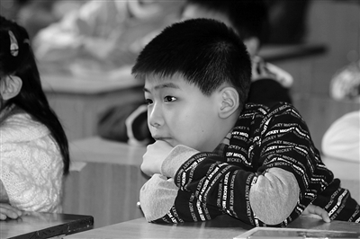 一个小朋友在“亲近母语”课堂上听课。