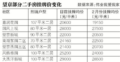 另外,有大型二手房中介机构统计,目前望京地区的成交均价也比2月份上涨了1000元/平米。但记者询问了望京地区多家门店的工作人员后发现,答复并不一致,有的中介表示成交价格和2月份相比,并没有明显变化,只是成交容易了。而另一些中介表示成交价格和报价一样,均是每平米上浮了一两千元。