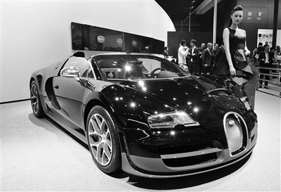 昨日,豪华跑车布加迪威航亮相北京车展。新京报记者 陈杰 摄