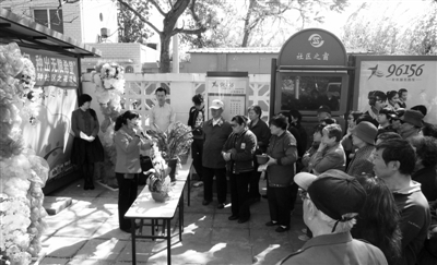 植物专家向居民讲解春天家中种花技巧。昨日,东城区长青园社区组织居民家中种花。