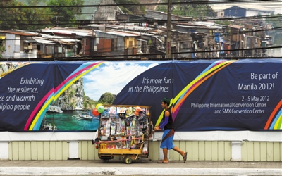 据新华社电 菲律宾政府最近在首都马尼拉机场和市区间构筑一道临时墙壁,挡住一处贫民窟,引发争议。
