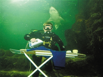 这项被称为“极限熨烫(extreme ironing)”的运动,如今已经在西方一些国家颇为流行,热爱她的人还成立了国际极限熨烫协会。很多人绞尽脑汁想要把烫衣板搬到各种地方,沙漠、雪地、水下甚至是钢丝绳或是悬崖边,热爱这项家务活的人认为,极限熨烫结合了户外运动的挑战性和烫衣服的温馨及成就感。