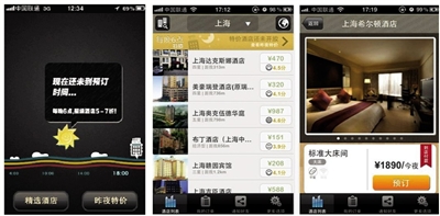 任鑫和合伙人共同开发的APP应用“今夜酒店特价”遵循了奥特莱斯折扣店的销售路线,在以特价吸引顾客之外,也设定了诸多限制,比如只能在智能手机上使用,只能在晚上6点以后预订等等。图片来自Iphone截图