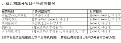 数据显示,4月份,北京多个项目均价环比出现下调