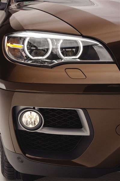 新车的动力系统没有变化,主要是在外观和内饰细节上做出了改进。其中,车辆的前雾灯新增哑光镶边,同时布置在外侧进气口的上方,位置更高、更靠两侧的处理进一步突出车辆的宽度。其中50i采用了带拱顶的发动机舱盖,为外观带来新的视觉感受。除了标配的双氙气前灯之外,新X6还在同级车中率先提供了自适应LED前照灯。