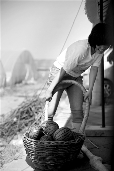 记者很想搭把手,但用手指弹了几下西瓜,觉得声音都一样,根本无法辨别成熟与否。“种瓜的人家都是女的背筐,男的摘瓜。”田建国说,挑瓜看起来容易,其实技术含量很高,“卖瓜都讲个口碑,卖出一个生瓜,客人就不来了。”