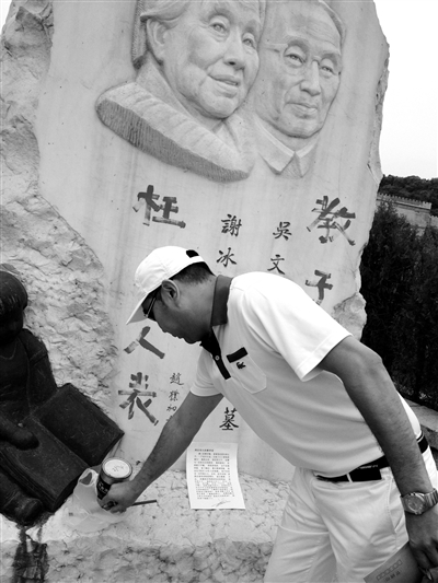 新京报讯 (记者张太凌 石明磊)位于八达岭附近中华文化名人雕塑纪念园内的冰心、吴文藻夫妇之墓,5月31日下午遭人破坏,墓碑被油漆刷上红字,同时还被张贴印刷品。