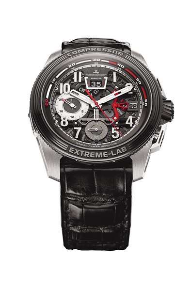 积家极限运动大师系列腕表:表壳采用TiVan 15钛合金打造,具有重量轻耐磨的特点。表圈采用超强防刮花高科技陶瓷,是款轻质的探险表。