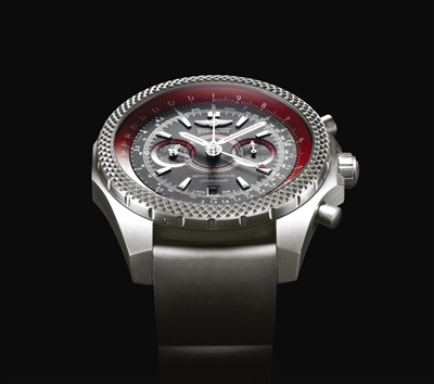 百年灵宾利超级跑车轻质计时腕表:采用超轻钛金属材质和橡胶表带,同时也采用了许多宾利跑车的元素,比如滚花纹饰表圈灵感便是源自宾利标志性的控制按钮纹饰。