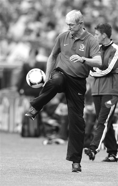 波兰主帅斯姆达在场边颠起球,看起来脚法还比较纯熟。