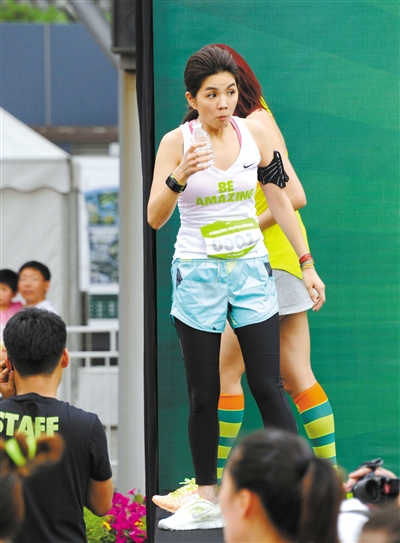 6月17日,北京,Ella陈嘉桦为女子5公里跑步活动站台。