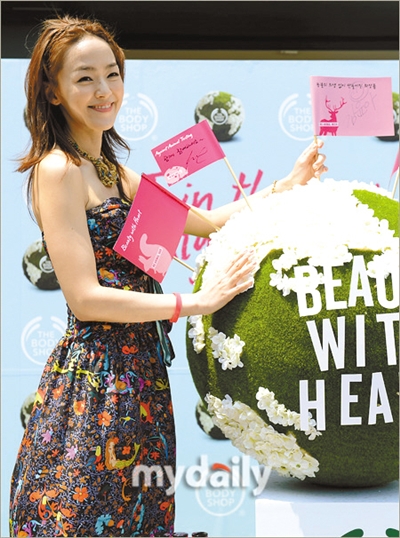 昨日,韩国歌手金允儿首尔宣传新品彩妆。