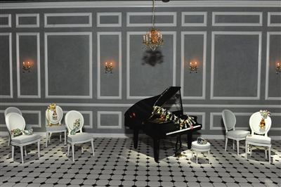 展览现场被设计成位于巴黎蒙田大街三十号的迪奥总部大楼,每一个房间都还原了时装秀、舞会、花园等主题场景用来展示珠宝。