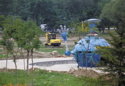 居民何先生称,他住在太阳宫公园附近的半岛国际公寓已有8年,闲暇时经常和周边小区居民等来公园健身游戏,“去年夏天,太阳宫公园曾将近二分之一面积承包给他人,建水上乐园。夏天过后,水上乐园被拆除,但是,去年秋、冬,绿地并未恢复,留下大面积的沟沟壑壑,杂物遍地。今年春,公园方开始培土种草,修复路面,周围居民都很高兴,常带孩子去玩耍散步,但是,“刚刚恢复约3个月,没想到又要卷土重来。”