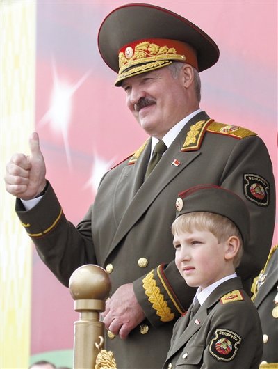 6月26日,白俄罗斯总统亚历山大·卢卡申科携7岁的幼子尼古拉·卢卡申科一同造访委内瑞拉,并与总统查韦斯亲密互动。有细心的网友在照片上发现,尼古拉腰间竟然别着一把枪。一时间,“白俄罗斯第一公子”成为不少国际媒体关注焦点。实际上,这位7岁的“第一公子”,早就随自己的总统父亲一起“涉足”政坛。