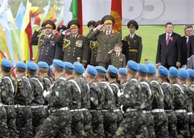 尼古拉·卢卡申科和父亲一起阅兵。年纪尚幼的他便“涉足”政坛,参加各种政治活动。