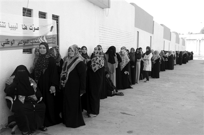 7月7日,在利比亚首都的黎波里的一个投票站外,选民们排队等待参加投票。 新华社发